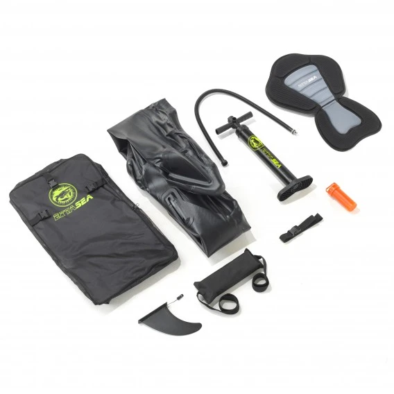 Das stromlinienförmige Design und der Drop-Stitch Boden ermöglichen einen schnellen Geradeauslauf, eine abnehmbare Finne hält das Kajak unterstützend auf Kurs. An Verstaumöglichkeiten für Gepäck und Proviant wurde natürlich auch gedacht, ebenso an den Spritzwasserschutz und das Lenzventil an der Spitze des Hecks.