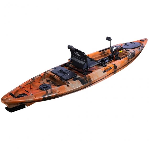 Trete in die Pedale, lehne dich entspannt zurĂŒck und genieĂe die zauberhafte Natur vom Wasser aus. Mit diesem Pedalkajak kannst du deine Angelabenteuer und Kajaktouren in vollen ZĂŒgen genieĂen. Auf dem Wasser zeigt es sich zahm. Es ist kippstabil und ĂŒber die Handsteuerpinne einfach manövrierbar. Ăber die Pedale kannst du es ebenso rĂŒckwĂ€rts steuern. Ein tolles Allround SOT mit vielen Ausstattungsdetails, zum fairen Preis.